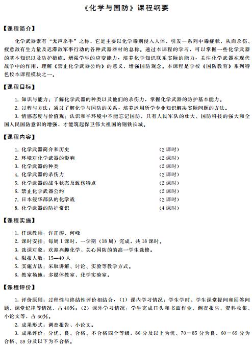 《化学与国防》课程纲要