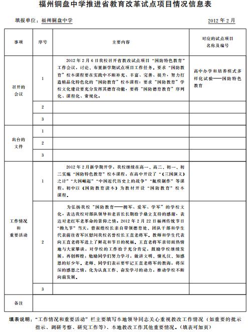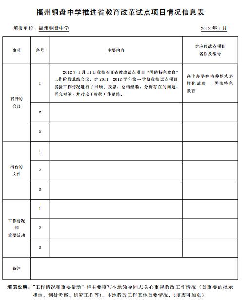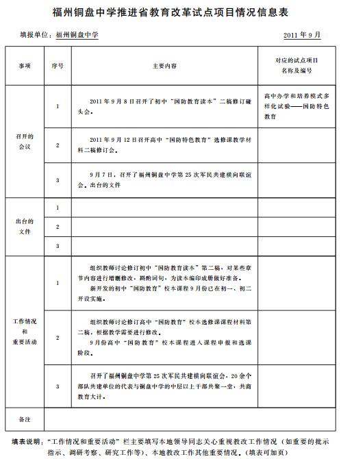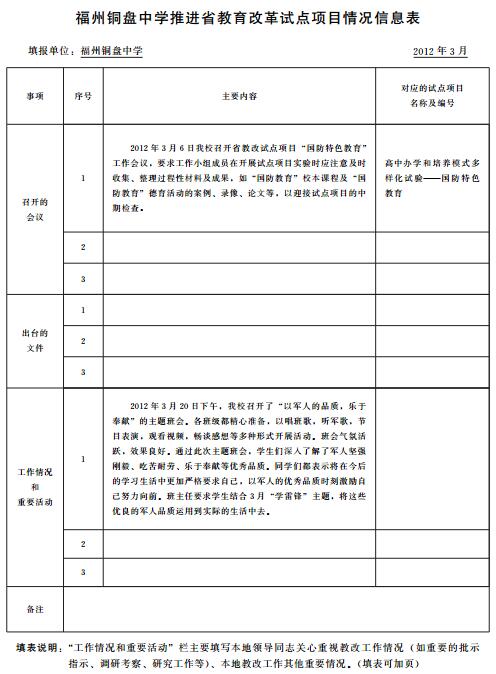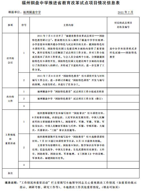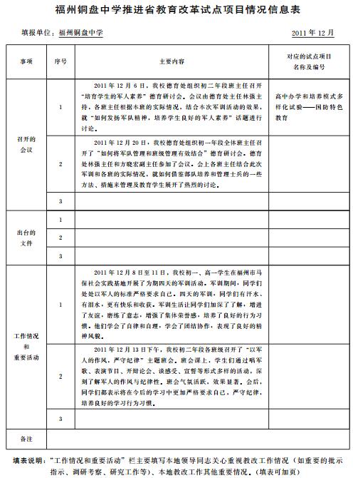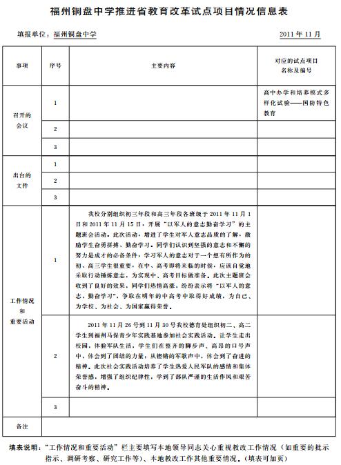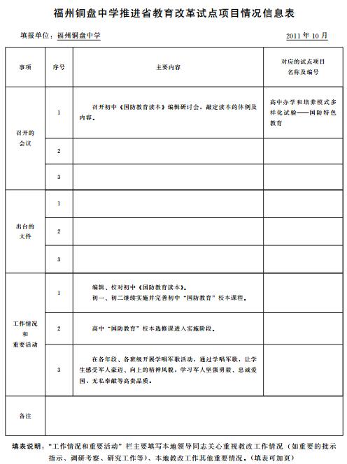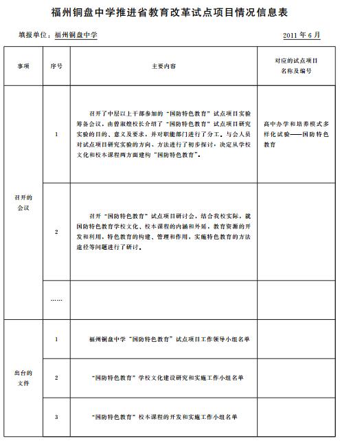 福州铜盘中学推进省教育改革试点项目情况信息表